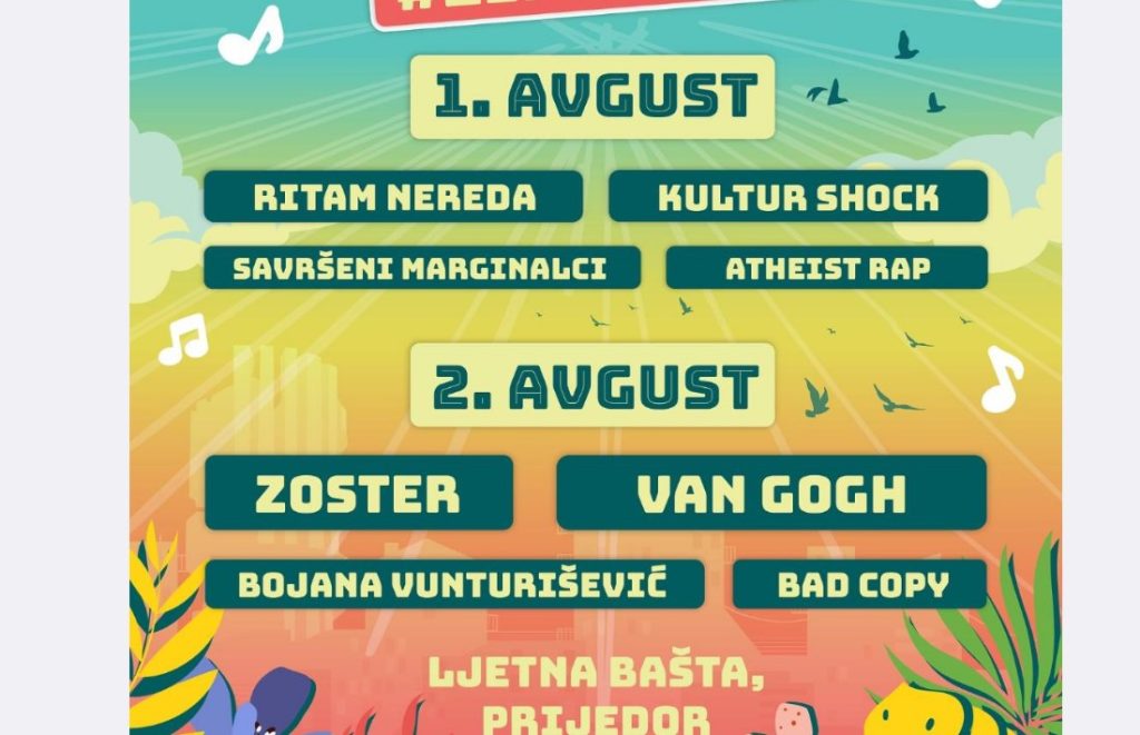 Podsjećamo, prvu festivalsku noć, otvara banjalučka grupa Fjužna pruga, a potom će na velikoj bini Ljetne bašte zasvirati Atheist Rap, Ritam nereda, Kultur Shock i Savršeni marginalci.